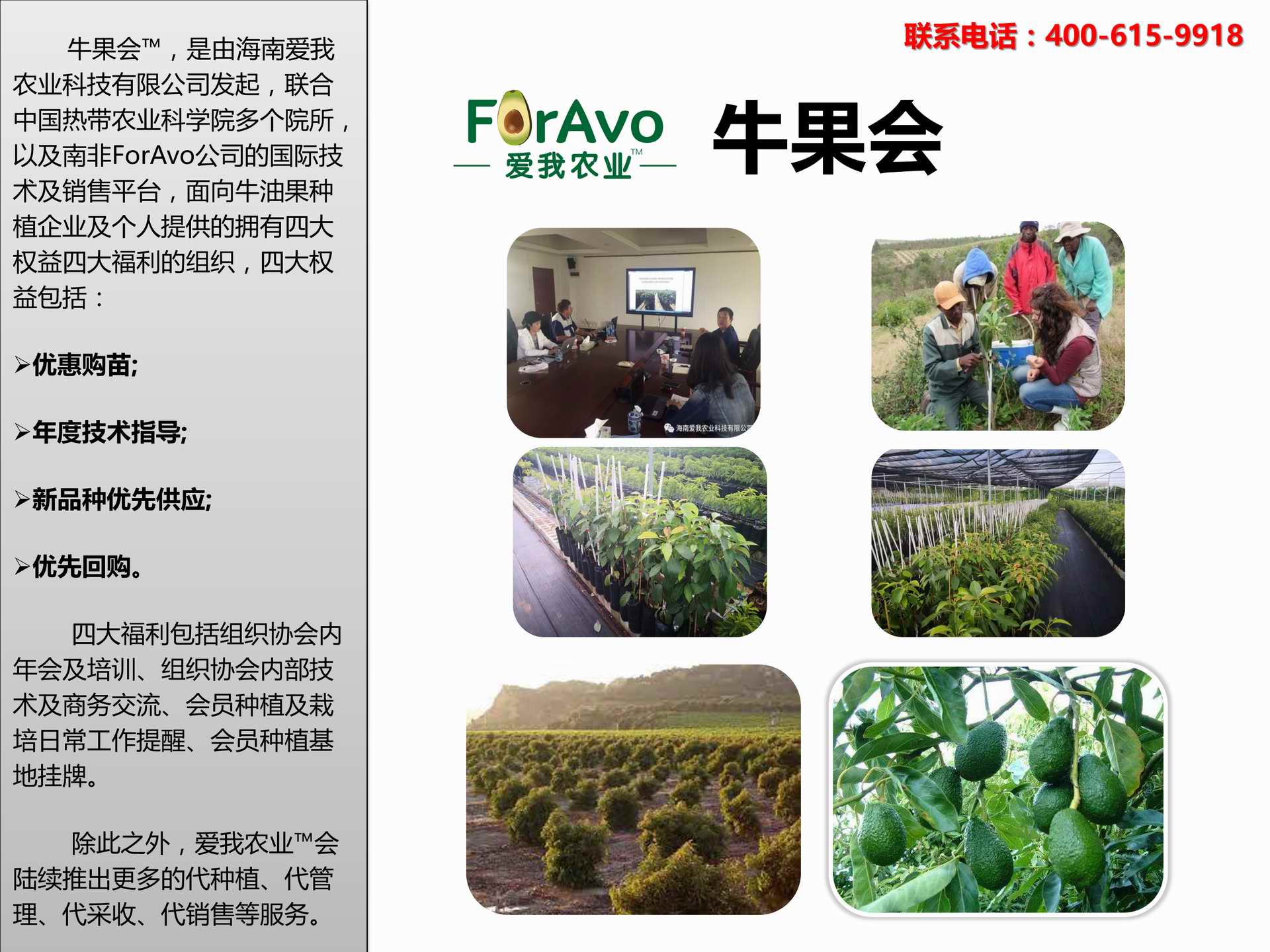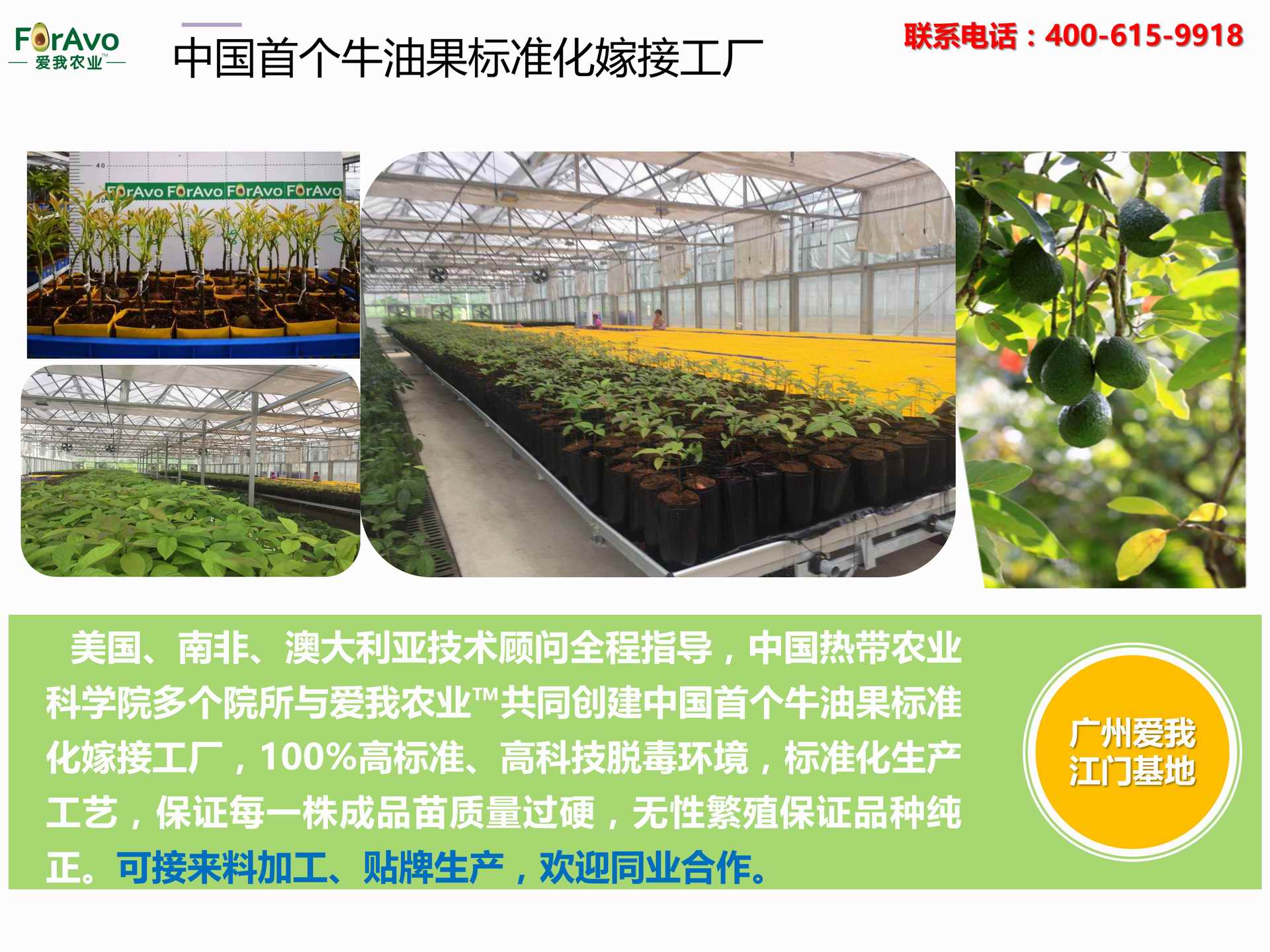 海南愛我農業科技有限公司是一家綜合性的高科技農業發展企業,旗下愛我農業TM致力于打造中國最大最強的牛油果種植企業。依托美國、南非、澳大利亞等擁有百年牛油果繁育、種植歷史以及產業鏈市場的優勢,開展牛油果種苗繁育、種植技術,種植加盟、深加工等產業。結合中國市場,面向廣大苗圃基地、種植農場、合作加工等企業,推出的適合規?;藴驶呐S凸a業鏈服務。 Hainan Foravo Agricultural Technology Co., Ltd. is a comprehensive high-tech agricultural development enterprise , dedicated to building the largest and most powerful avocado plantation enterprise in China. Relying on the advantage of avocado nursery, planting history, and the industrial chain over 100 years in the United States, South Africa, Australia, we are carrying out nursery, planting, proce...